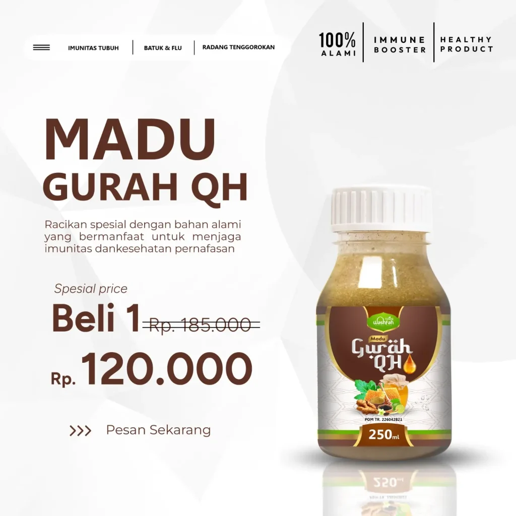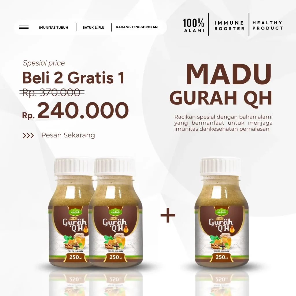 Testimoni mereka yang telah merasakan manfaat madu gurah QH Paket Silver - Beli 1 Rp. 185.000 Rp. 120.000 Paket Gold - Beli 2 gratis 1 Rp. 370.000 Rp. 240.000 PESAN SEKARANG Klik salah satu link gambar di bawah ini Kami siap melayani dengan sepenuh hati KONSULTASI SEKARANG JUGA